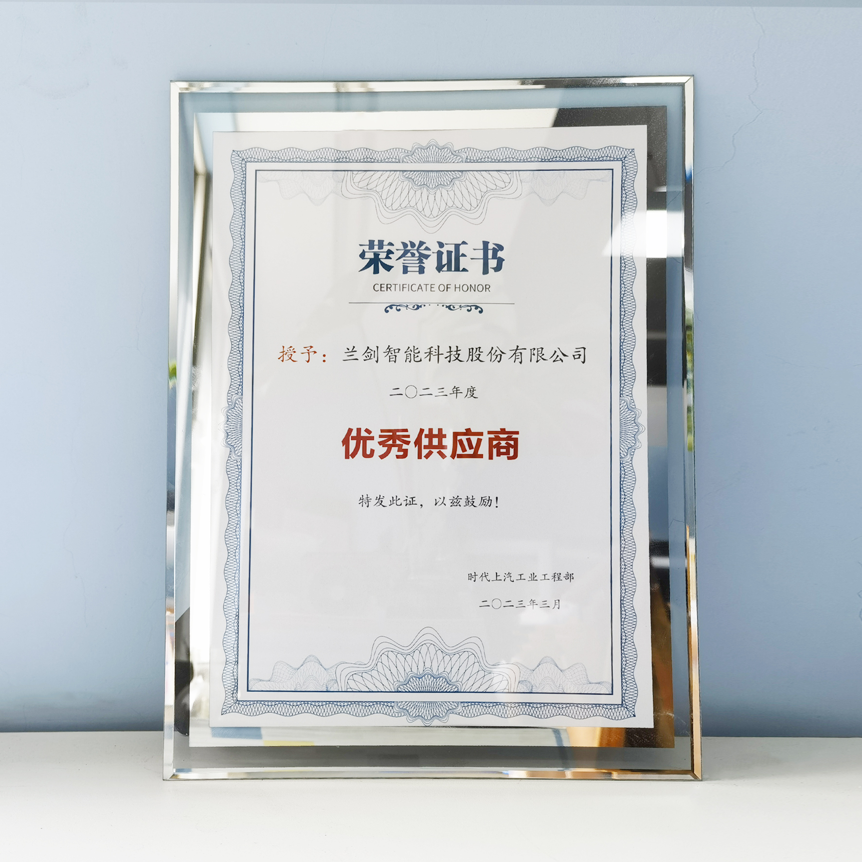 杏村桃塢,芳菲三月,春風(fēng)十里。在這樣燦爛的春日里,全球新能源龍頭企業(yè)給蘭劍智能頒發(fā)了“優(yōu)秀供應(yīng)商”的榮譽(yù)。蘭劍智能已多次獲得該企業(yè)的表彰肯定,充分體現(xiàn)了“蘭劍智能是一家能為客戶兜底的企業(yè)”。